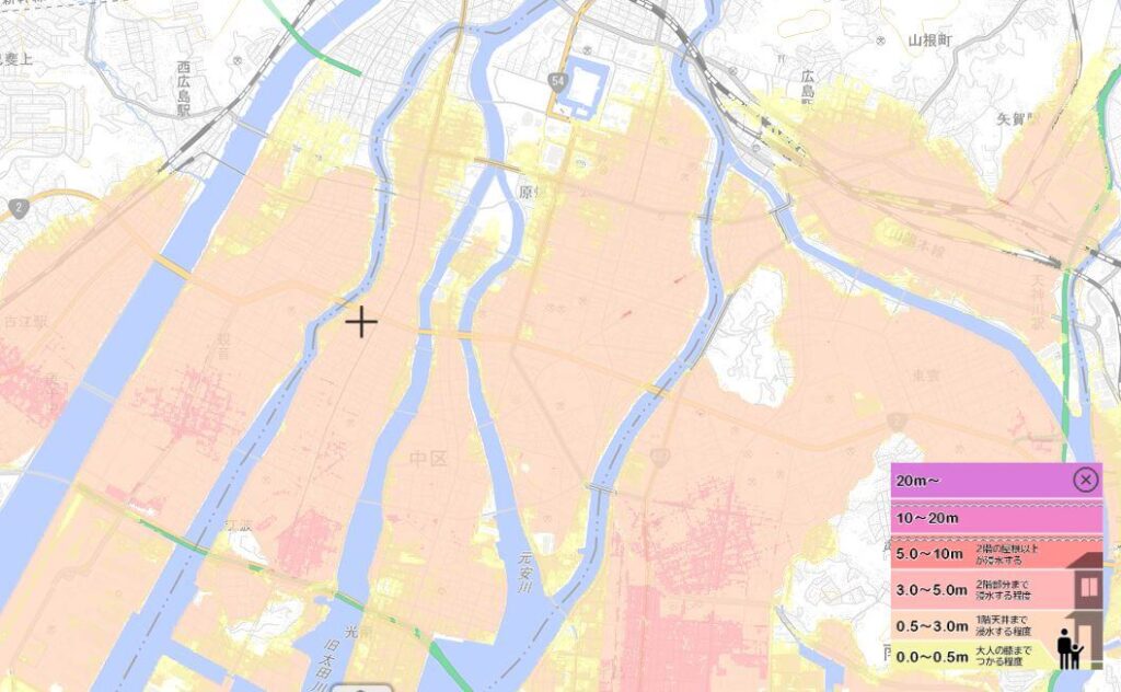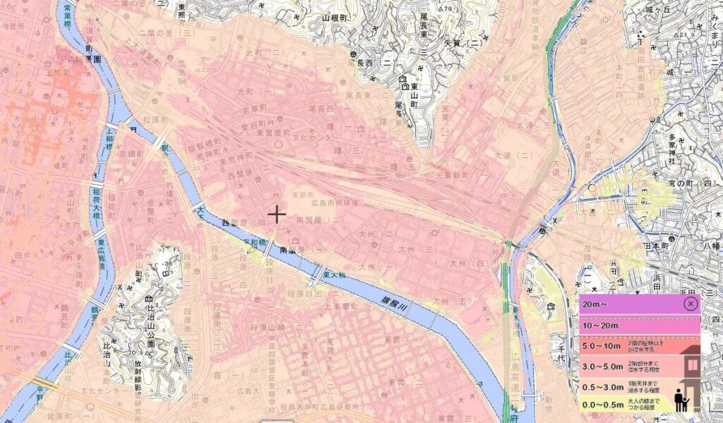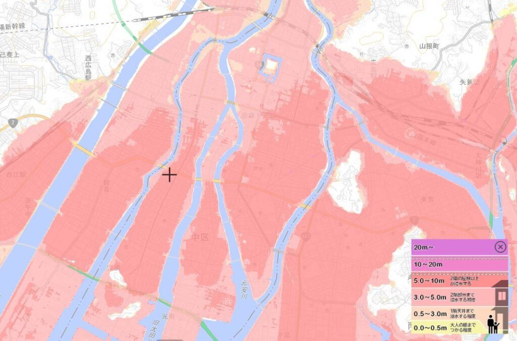 | 0.0~0.5m | 基礎が0.5m以上ある1階住居や2階以上の住居は浸水被害がない |