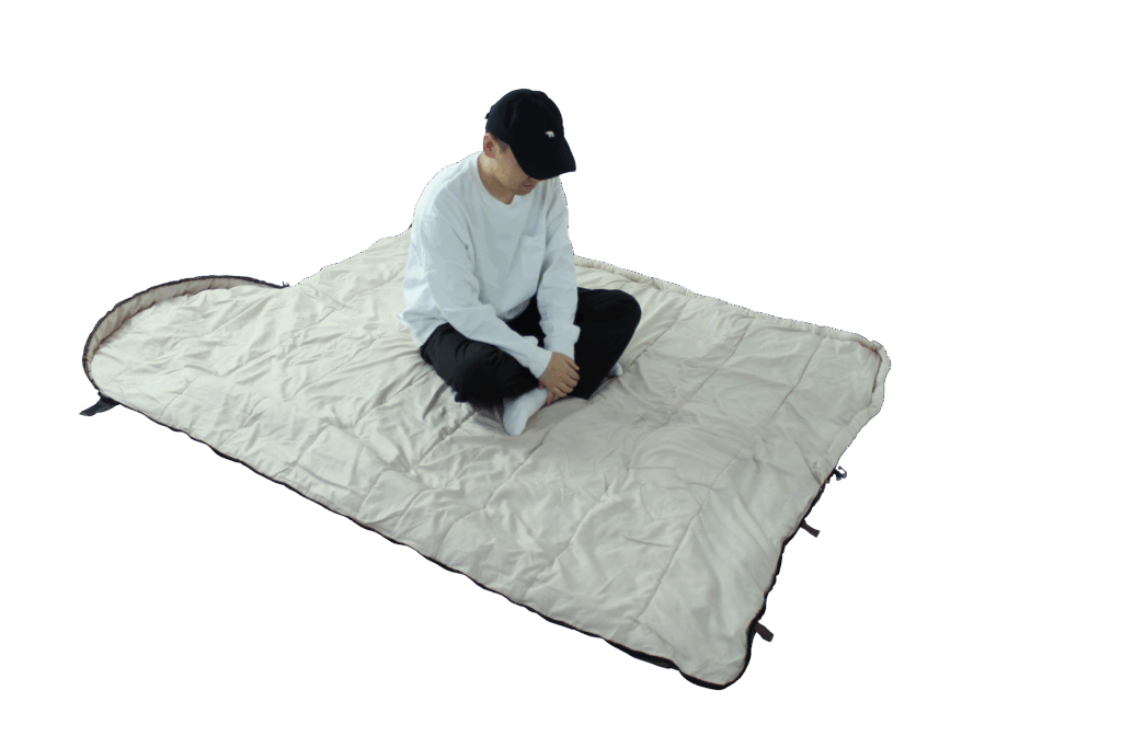 【Bears Rock封筒型-15℃の寝袋を広げて使用したイメージ】 モデル身長:約170㎝