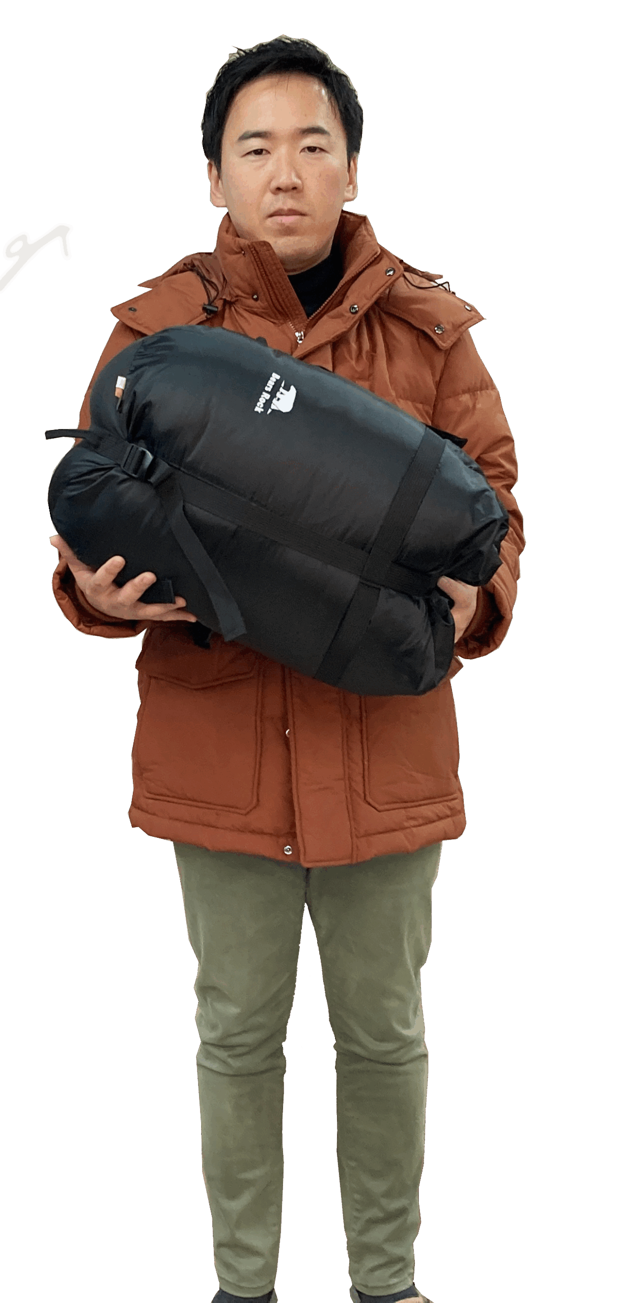 【170cmのスタッフがBears Rock封筒型-15℃の寝袋を持ったイメージ】